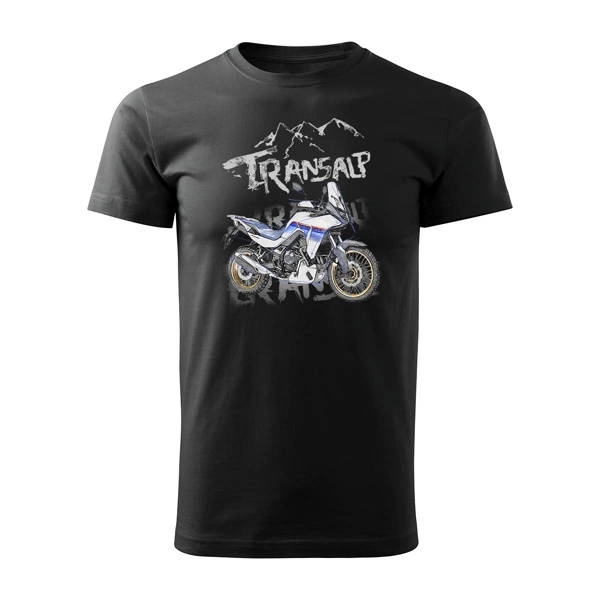 Koszulka motocyklowa z motocyklem na motor Honda Transalp 750 męska czarna