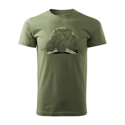 Koszulka z traktorem John Deere Claas New Holland Fendt dla rolnika męska khaki REGULAR