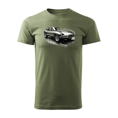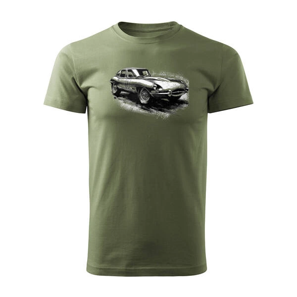 Koszulka z samochodem jaguar z jaguarem e-type e type etype kolekcjonerska męska khaki REGULAR