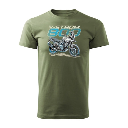 Koszulka z motocyklem na motor Suzuki V-strom Vstrom 800 męska khaki REGULAR