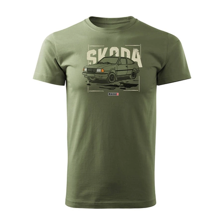 Wyprzedaż - koszulka z samochodem Skoda 120 125 130 PRL legend męska khaki REGULAR