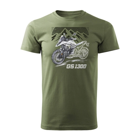 Wyprzedaż - koszulka motocyklowa z motocyklem na motor BMW GS R 1300 kolekcjonerska męska khaki REGULAR